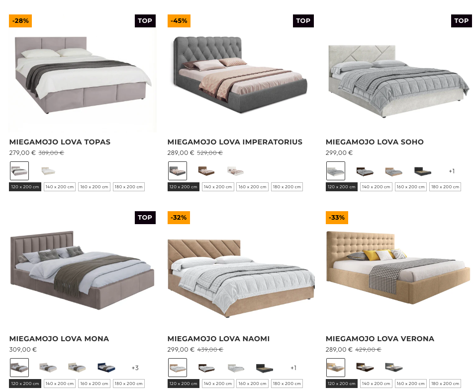Be to, pirkėjai patys renkasi: lovas su pakėlimo mechanizmais, patalynės dėžėmis, skirtingais audiniais ar čiužiniais. Tokia sistema leidžia nepermokėti už tai, ko nereikia.